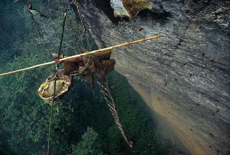 Když v našich krajinách uletí nějakému včelaři včely a usadí se na větvi, musí je pak chudák hledat, smetávat a usazovat do náležitého úlu. V jihovýchodní Asii, konkrétně v Nepálu, však sběrači záměrně včelí roje a jejich hnízda vyhledávají, aby jim přímo v přírodě mohli odebrat med. Jejich krkolomné výstupy jsou velice nebezpečné, nehledě na to, že je divoké včely notně poštípou. Časem se tak ze sběračů medu stávají buď dovední akrobaté imunní vůči žihadlům, nebo po pádu mrzáci.