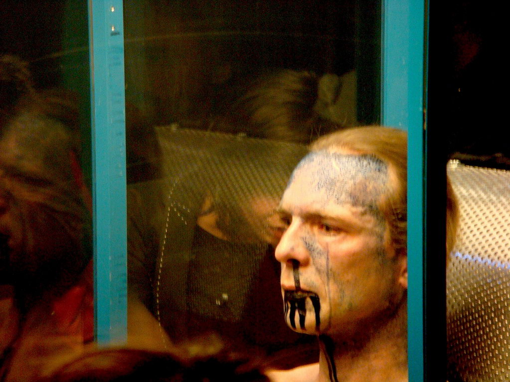 Švýcarský umělec Yann Marussich pořádné množství modrého barviva, pak se šel na hodinu vypotit do prosklené vytopené komory.