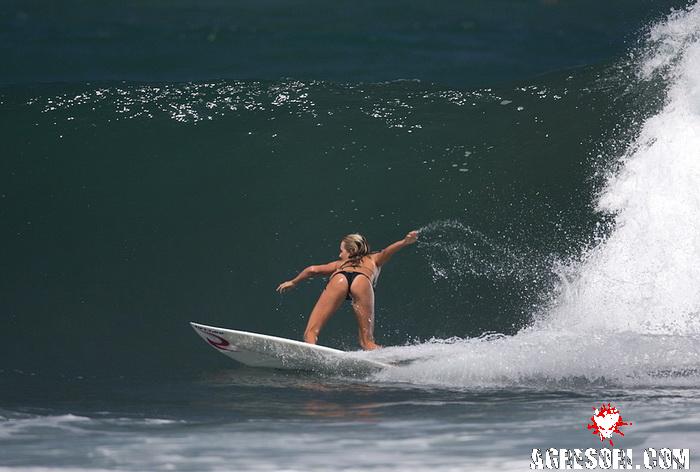 Krásné počasí, velké vlny a krásné postavičky v bikinách na surfech