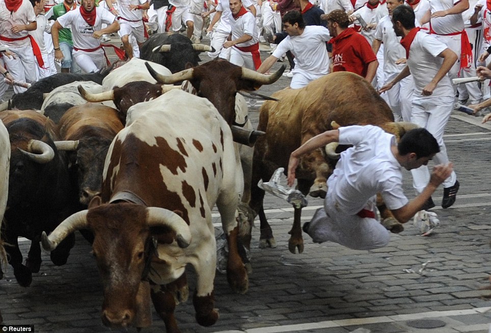 Slavný San Fermin, svátky býků ve španělské Pamploně. Směs nadšení, pestrosti, býčích zápasů, hromadných uličních oslav, horké španělské krve, tradice a také ovšem mírně hazardního běhu odvážlivců před rozzuřenými býky přímo centrem města.